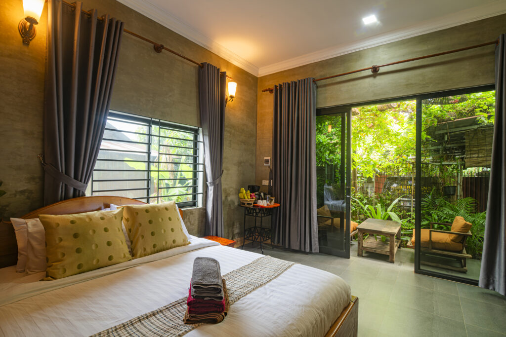 5 km from Angkor Wat, Koemle Homestay is a recently renovated property located in Siem Reap and provides air-conditioned rooms with free WiFi and private parking. Featuring free shuttle service, this property also provides guests with a sun terrace. The accommodation features a shared kitchen, full-day security and luggage storage for guests. The units provide views of the garden and come with a seating area, a washing machine, a fully equipped kitchen with a dishwasher, and a private bathroom with slippers and a hair dryer. An oven, a microwave and toaster are also provided, as well as a coffee machine and a kettle. Guests can enjoy a meal at an outdoor dining area at the guest house. The guest house offers an Asian or vegetarian breakfast. In the warmer months, you can make use of the barbecue facilities and dine on the private balcony. The area is popular for cycling and fishing, in addition, car hire and free use of bicycles are available at this guest house. An indoor play area is also available at Koemle Homestay, while guests can also relax in the garden. King’s Road Angkor is 9.2 km from the accommodation, while Cambodian Cultural Village is 4.4 km away, 9km from Pub street and main town of SR.