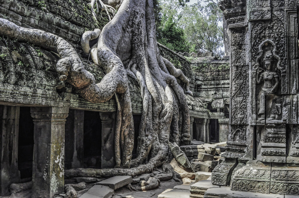 Leave home at 5.45am and riding a tuk tuk to the temples of the forest. Stop at Ta Prohm temple with the sprawling trees, we walk from the east gate and continue to the main temple complex to explore and photograph this spectacular structure with the ruined gallery over taken by the big tree routes.